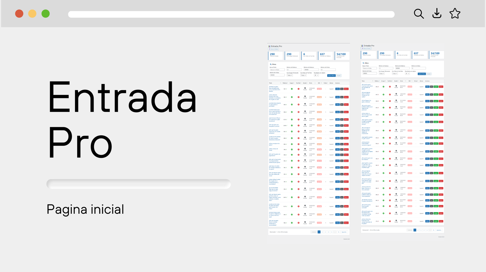Entradas Pro es un gestor avanzado de entradas para WordPress que combina análisis SEO, inteligencia artificial, estadísticas con geolocalización y herramientas automáticas para potenciar tu contenido y aumentar el tráfico orgánico de tu web.